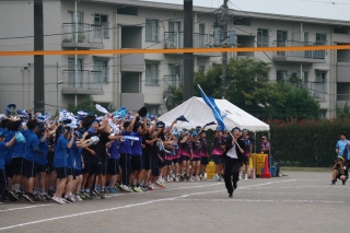 特に大きな盛り上がりを見せたのは、今年から始まった色別応援合戦です。各団は、事前に練習を重ねたダンスや演武、応援コールを披露し、衣装や小道具にも工夫を凝らしていました。生徒たちは仲間と息を合わせながら、全力で表現していました。