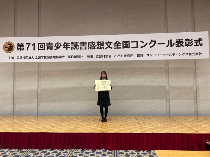 「第71回青少年読書感想文全国コンクール」に於いて、3年生北﨑花奈さんが全国学校図書館協議会長賞を受賞しました。