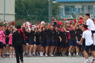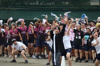 特に大きな盛り上がりを見せたのは、今年から始まった色別応援合戦です。各団は、事前に練習を重ねたダンスや演武、応援コールを披露し、衣装や小道具にも工夫を凝らしていました。生徒たちは仲間と息を合わせながら、全力で表現していました。