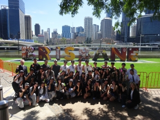 総進の生徒たちは、クラス別でムービーワールド、ドリームワールド、サーフィン体験を楽しみました。特進の生徒たちは、ブリズベンの中心街を、現地の大学生とともに歩く班別研修をしました。